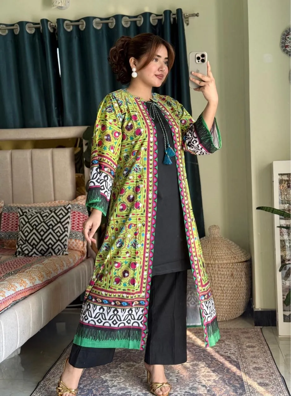 Neck portion -এ Colourful tarsel design